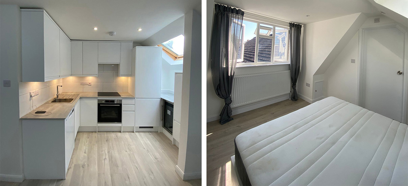 We recently completed a challenging Loft Conversion Project that required creative problem-solving. Our main task was to create a new bedroom and en-suite bathroom within the existing roofline, which presented significant space constraints. This project involved detailed planning, including the creation of precise construction drawings and careful consideration of plumbing and electrical requirements. We worked closely with builders throughout the process to ensure smooth execution. Despite the challenges, we successfully connected the new loft space to the existing house via staircases, resulting in a custom-designed loft that blends seamlessly with the original structure while maximizing functionality. Additionally, the client took this opportunity to update their kitchen on the floor below, which included removing a wall to create an open-plan living area.