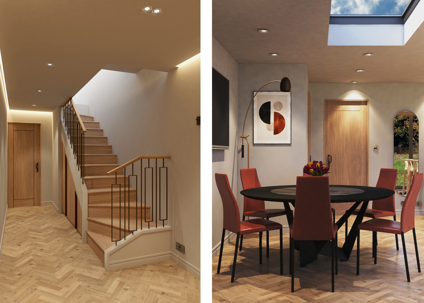The Project of a semi-detached house in Essex, consisting of two units with four bedrooms each, included not only the Planning Application but also the complete Interior Design. Inspired by a distinctly modern style, tailored to meet all the client’s requirements, we maximised the use of available space while minimising costs, ensuring both functionality and efficient spatial organisation. Great care was taken in the selection of materials and furnishings, some of which were bespoke, with smart space-saving solutions throughout.